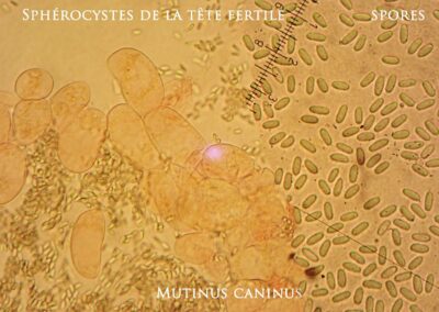 En microscopie, les basides portent six spores qui font 4-5 X 2.5 microns